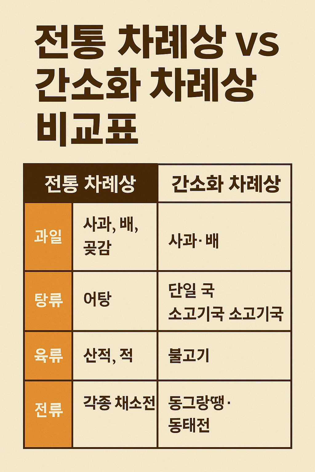 간소화는 단순히 음식을 줄이는 것이 아니라, 상징적 의미는 유지하면서 준비 과정의 부담을 최소화하는 방식입니다.